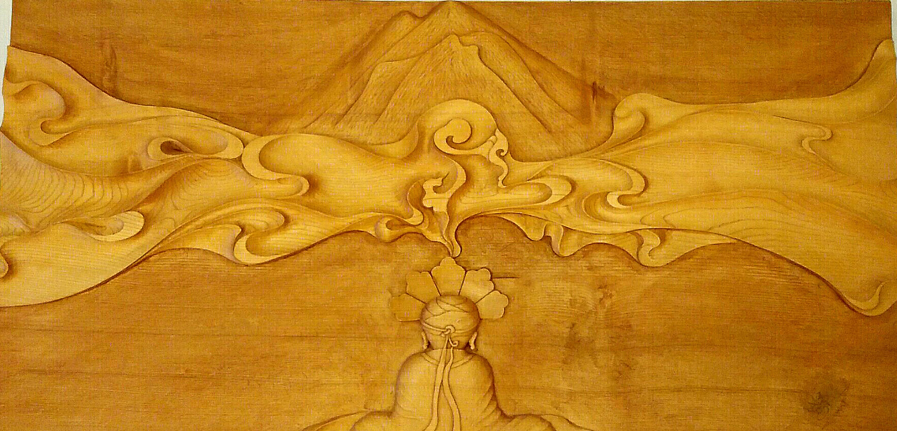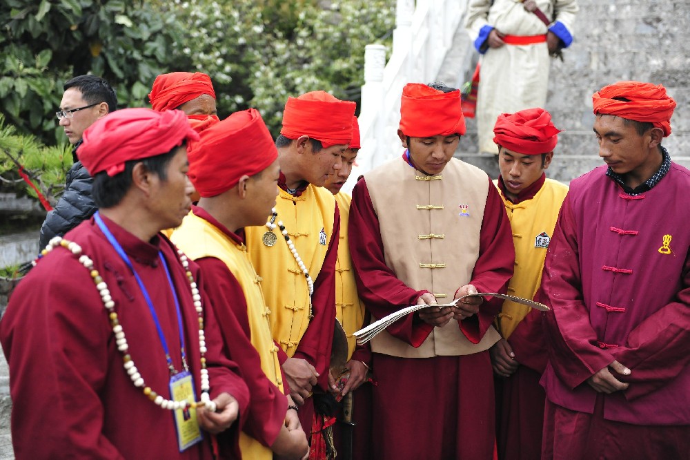 據(jù)古老的東巴經(jīng)《崇搬圖》(創(chuàng)世紀(jì))記載,在宇宙混沌萬物還沒有產(chǎn)生的時候,上方傳來一個美妙的聲音,下方冒出一個白氣,聲音和氣結(jié)合產(chǎn)生了天和地。